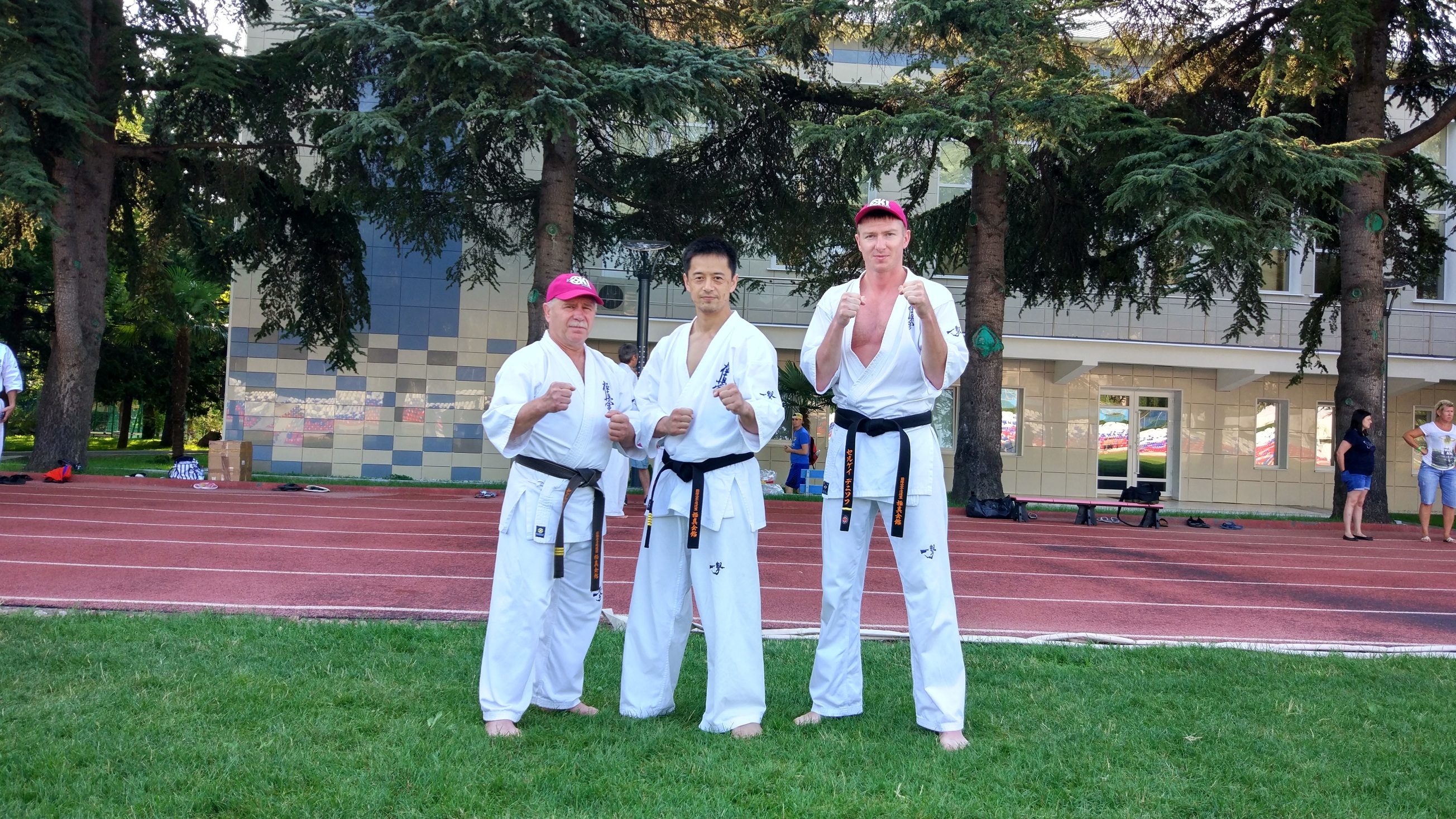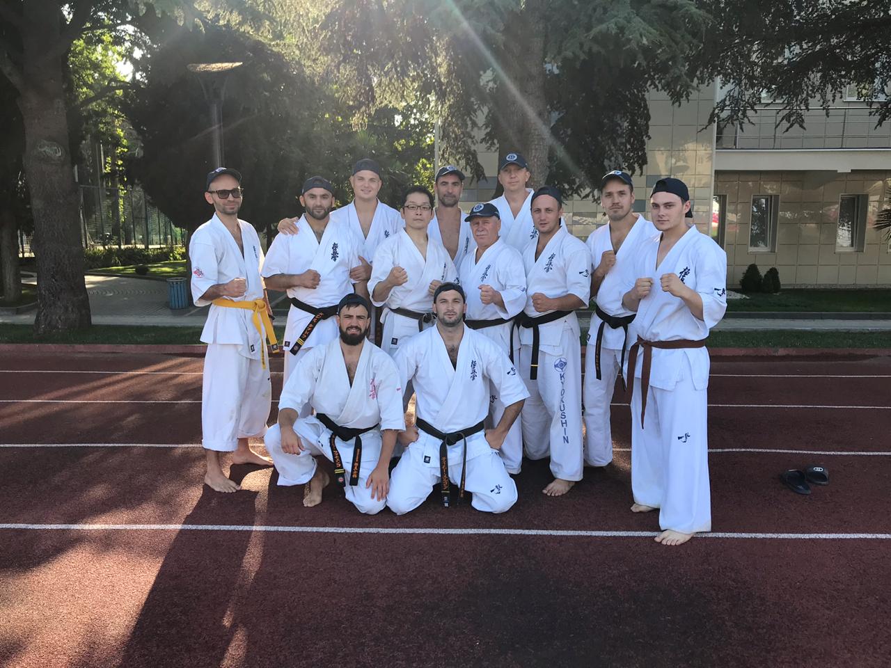 С 26 июня по 02 июля на побережье черного моря в городе Анапа под руководством представителей Хонбу IКО Шиханов Коичи Кавабата 7ДАН и Артура Аваннисяна 5ДАН, проводились Учебно-тренировочные сборы Российской Национальной Федерации Ояма Киокушинкай Каратэ-до, а также интенсивный курс для инструкторов, руководителей клубов и организаций. Руководитель Динской районной организации каратэ - С.Н. Сидоренко III ДАН и наши лучшие ученики приняли активное участие в сборах. По окончании УТС проводились КЮ и ДАН тесты. Трое наших старших спортсменов /Денисов Сергей, Тыщенко Виталий и Савин Денис/ успешно сдали экзамен на 1ДАН. Руководство районной организации и тренерский состав поздравляет наших каратистов с почетным званием - сэмпай. Надо отметить, что пятнадцать лет назад сэнсэй Коичи Кавабата принимал ДАН-тест на первый ДАН у С.Н. Сидоренко. Сэнсэй С.Н. Сидоренко прошел интенсивный курс под руководством шихана Артура Аваннисяна 5ДАН.