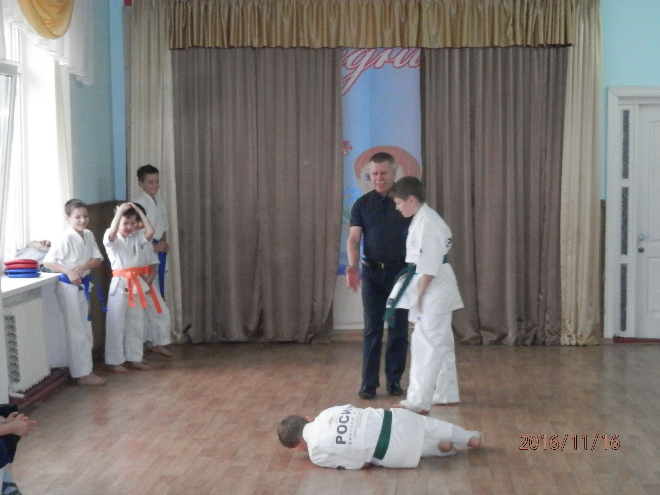 День физкультурника станица Васюринская. Глава администрации поселения лично поздравил наших лучших каратистов.